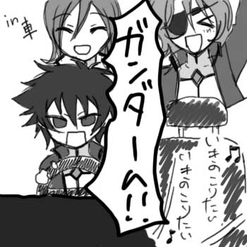 ガンガン、マクロスを流しながら00の話でもりあがる3人。坂道キツいとこもあったりで、みんなで「ガンダーム!」と叫びながら乗り切りました(何)