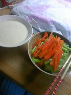 夜だけ野菜にしてみようとチーズソースと湯で野菜